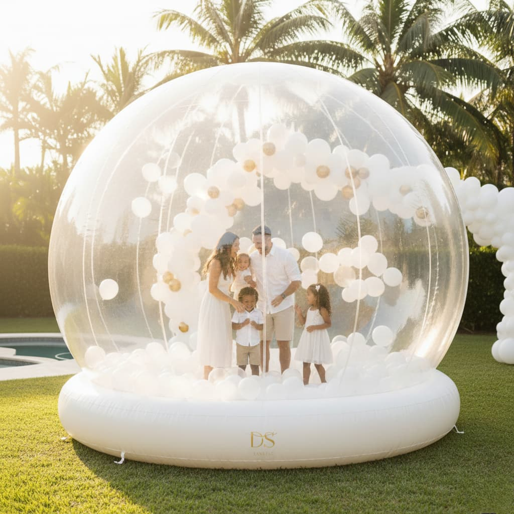 Experience the latest trend with our spectacular Bubble Houses. This transparent dome creates a magical atmosphere as balloons swirl around inside, providing a unique sensory experience and the ultimate «Instagrammable» moment.
